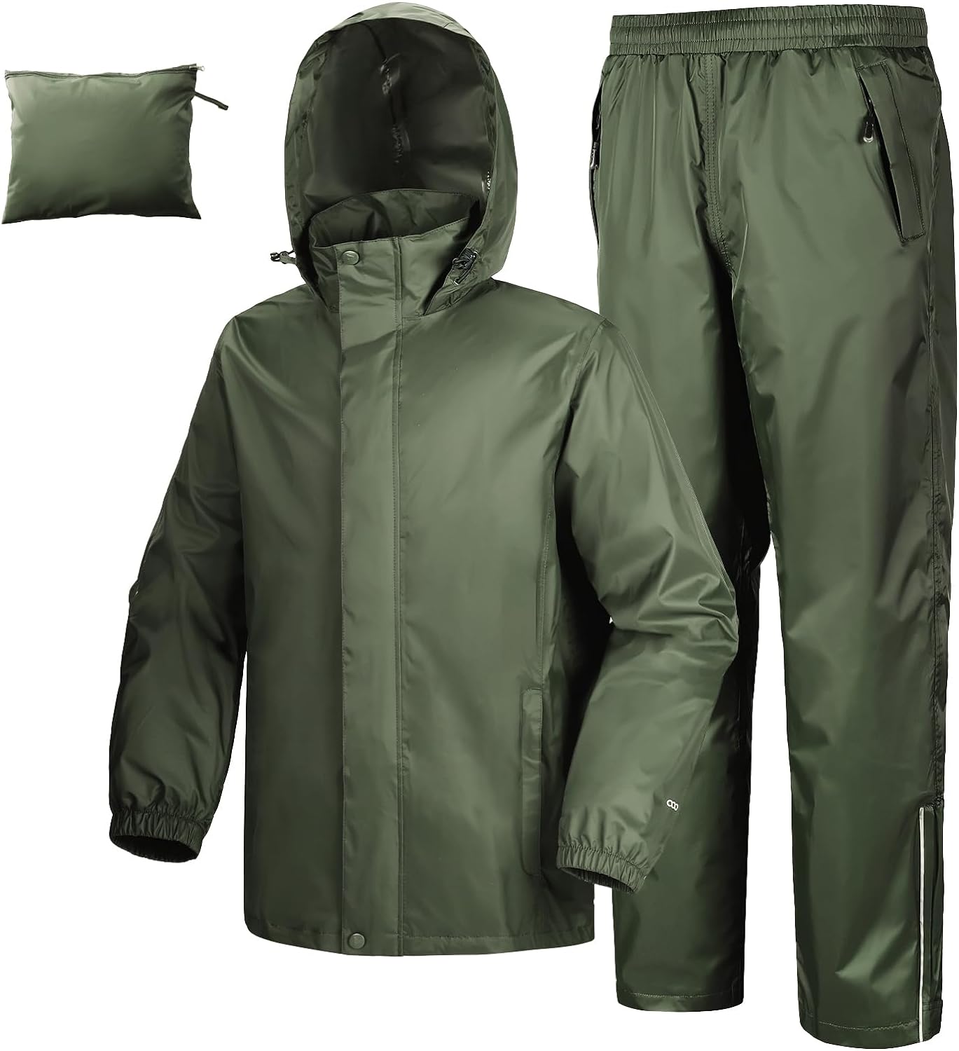 33 英尺(約 10.1 米)男式防水雨衣連帽防雨褲可折疊雨衣套裝防風兩件套雨衣帶*反光條,適合釣魚遠足露營