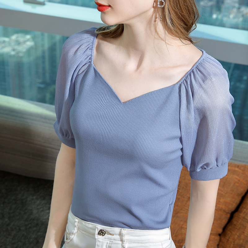 夏季新款女裝拼接棉體恤氣質v領上衣