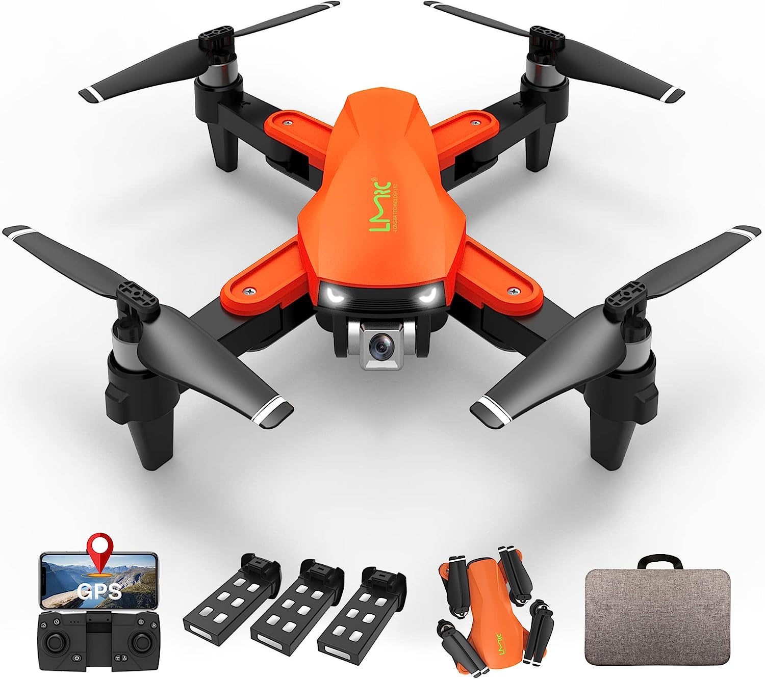 GPS 無人機 附攝影機 成人適用 4K UHD 無刷馬達 GPS 自動返航 5GHz FPV RC 四軸飛行器 自動返航 高度保持 跟隨我 客製化飛行路徑 初學者 3 顆電池和攜帶包 橘色