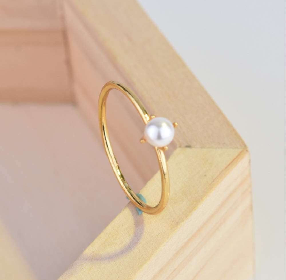 LVSHI 女式 14k 黃金珍珠鑲嵌珍珠戒指婚禮派對時尚訂婚婚禮首飾 尺碼 6-10