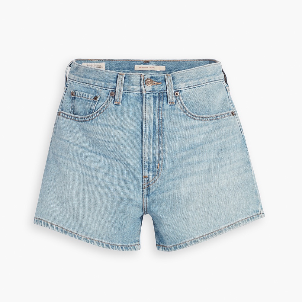 High Loose復古超高腰牛仔闊腿短褲 女