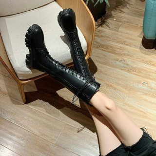 率性甜美超輕量鋸齒綁帶厚底馬汀長靴